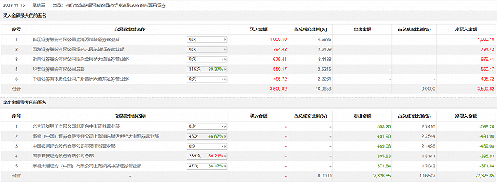 中润光学11月15日涨12.62%,全天换手率达34.48%,振幅达18.59%。龙虎榜数据显示,营业部席位合计净买入1182.97万元。其中,长江证券上海万荣路证券营业部、国海证券绍兴人民东路证券营业部分别买入1000.10万元、794.42万元;光大证券北京东中街证券营业部、高盛(中国)证券上海浦东新区世纪大道证券营业部分别卖出598.20万元、491.90万元。
