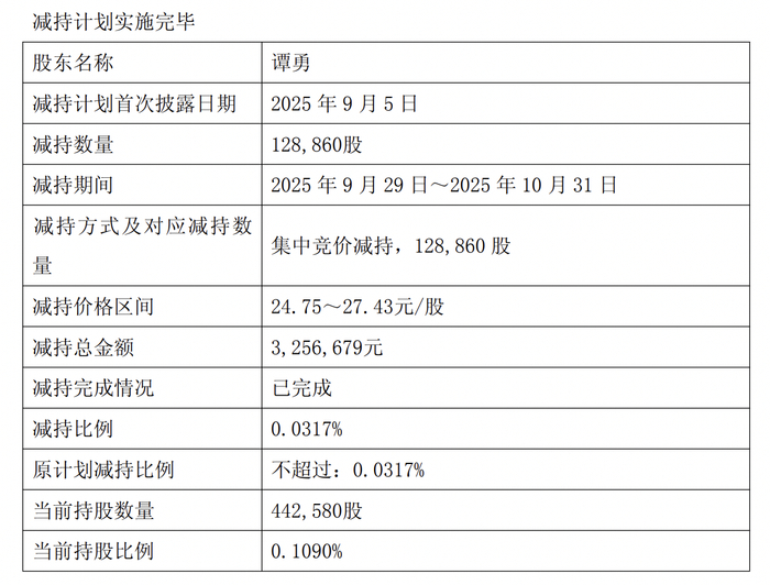 瑞财社注意到,递表前,欧林生物CFO谭勇完成减持公司股份,减持总金额325.67万元。具体来看,2025年9月29日至2025年10月31日期间,谭勇通过集中竞价方式减持公司股份12.89万股,占公司总股本的0.03%。目前,谭勇持有公司股份44.26万股,占公司总股本的0.11%。