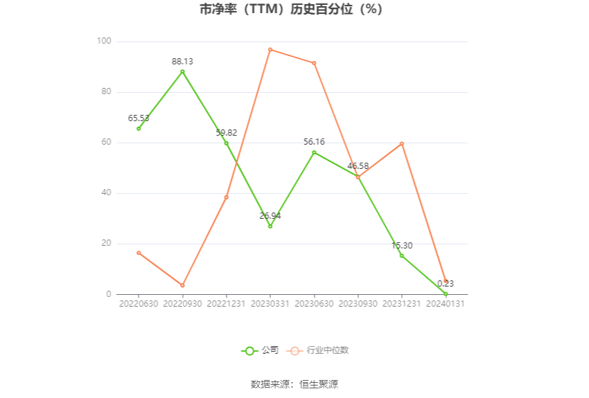 市盈率为负时,不显示当期分位数,会导致折线图中断。