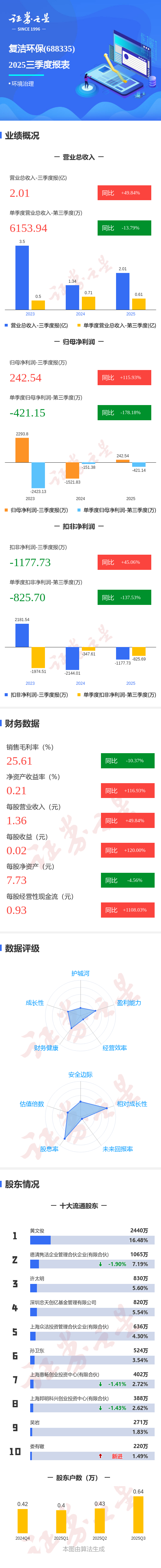 图解复洁环保三季报:第三季度单季净利润同比下降178.19%