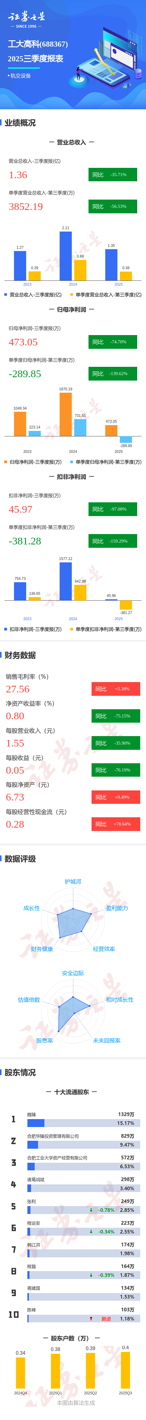 图解工大高科三季报:第三季度单季净利润同比下降139.62%