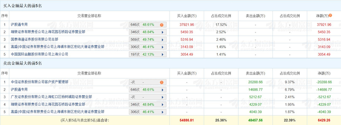 龙虎榜丨伟测科技涨15.22%刷新高,沪股通净买入2.32亿元