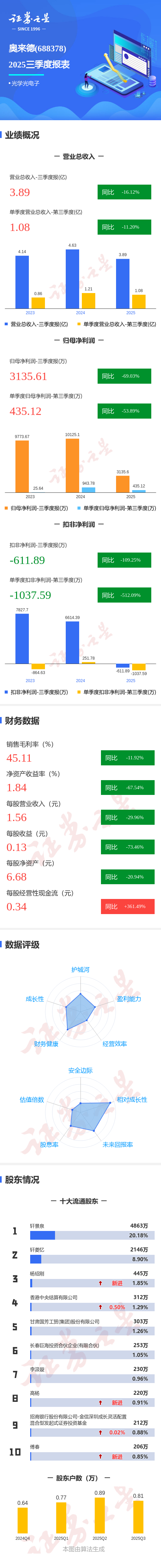 图解奥来德三季报:第三季度单季净利润同比下降53.90%