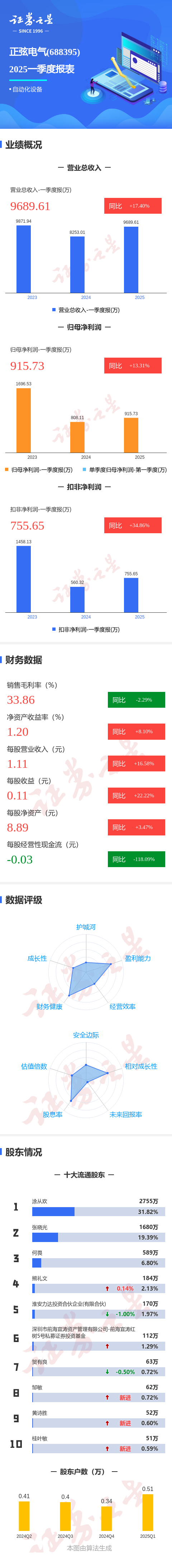 图解正弦电气一季报:第一季度单季净利润同比增13.32%