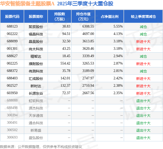 华安智能装备主题股票A的前十大重仓股如下:
