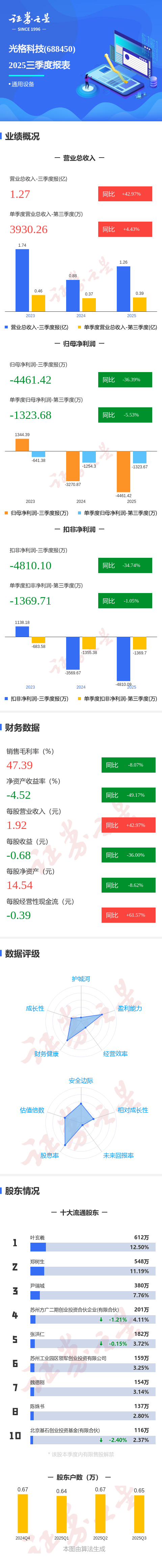 图解光格科技三季报:第三季度单季净利润同比下降5.53%