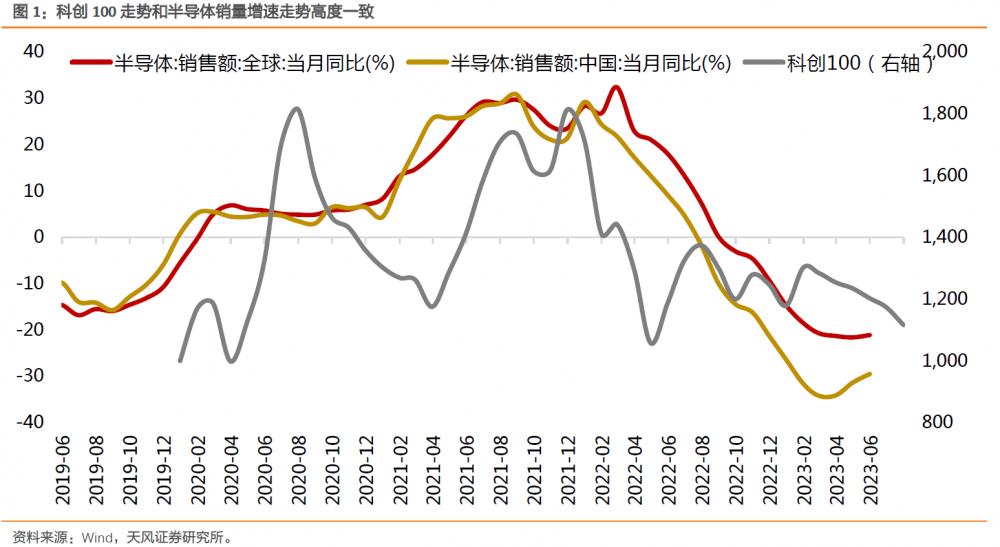 天风证券曾在研报指出,科创100走势与半导体销量走势高度一致。