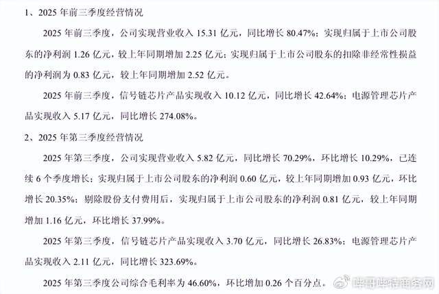 电源管理IC已成为思瑞浦在半导体市场中增长最迅猛的引擎。据思瑞浦第三季度财报,电源管理IC产品营收从2024年上半年的8842.63万元(仅占总营收17.45%),飙升至2025年第三季度的2.11亿元(占总营收32.81%),同比大幅增长323.69%!