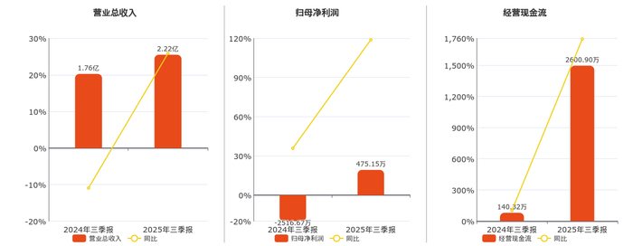 公司营业总收入为2.22亿元,在已披露的同业公司中排名第95。归母净利润为475.15万元,在已披露的同业公司中排名第76。经营活动现金净流入为2600.90万元,在已披露的同业公司中排名第71。