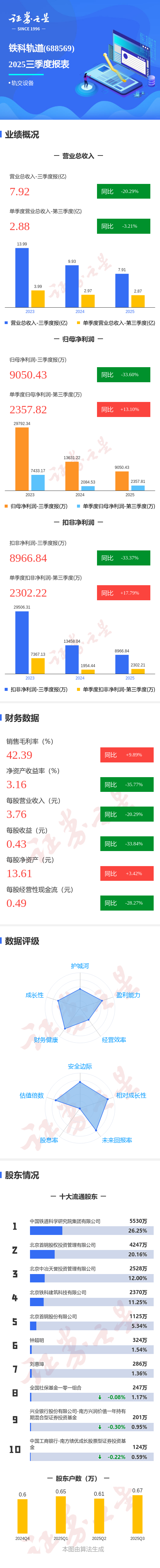 图解铁科轨道三季报:第三季度单季净利润同比增长13.11%