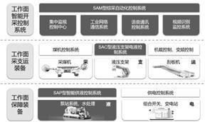SAM型综采自动化控制系统是以工业环形以太网连接地面调度监控中心和井下顺槽监控中心,集成采煤机智能控制子系统、液压支架电液控制子系统、工作面视频监控子系统及智能集成供液子系统等工作面设备子系统,形成的成套装备智能控制核心系统,是操作人员的人机接口与监控平台,其通过建立统一的接口和通信协议,实现与各个系统的数据通信,满足生产工艺监控要求。该系统能够满足薄煤层、中厚煤层、大采高及放顶煤等不同类型工作面的智能化应用需求,满足不同类型自动化设备和协同联动智能化要求,具有针对性的解决方案。