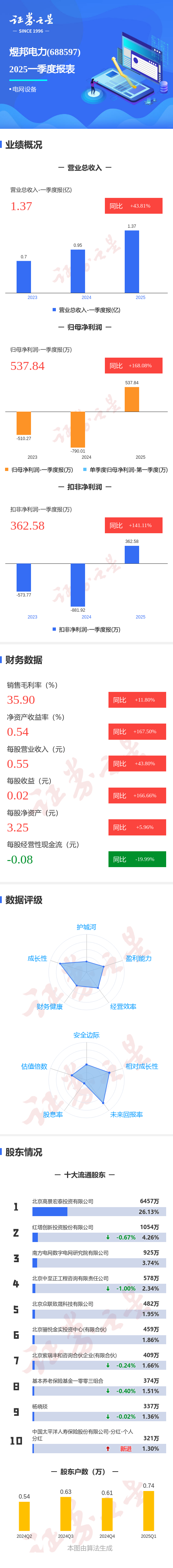 图解煜邦电力一季报:第一季度单季净利润同比增168.08%