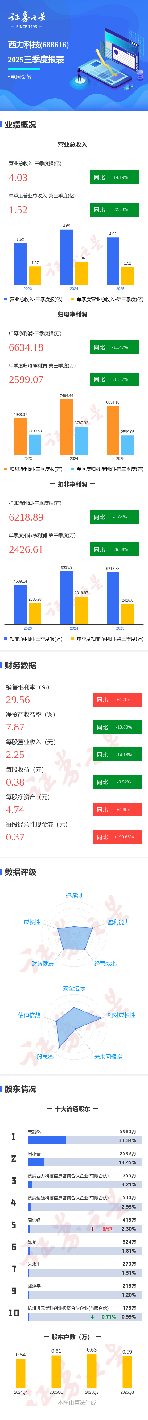 图解西力科技三季报:第三季度单季净利润同比下降31.37%