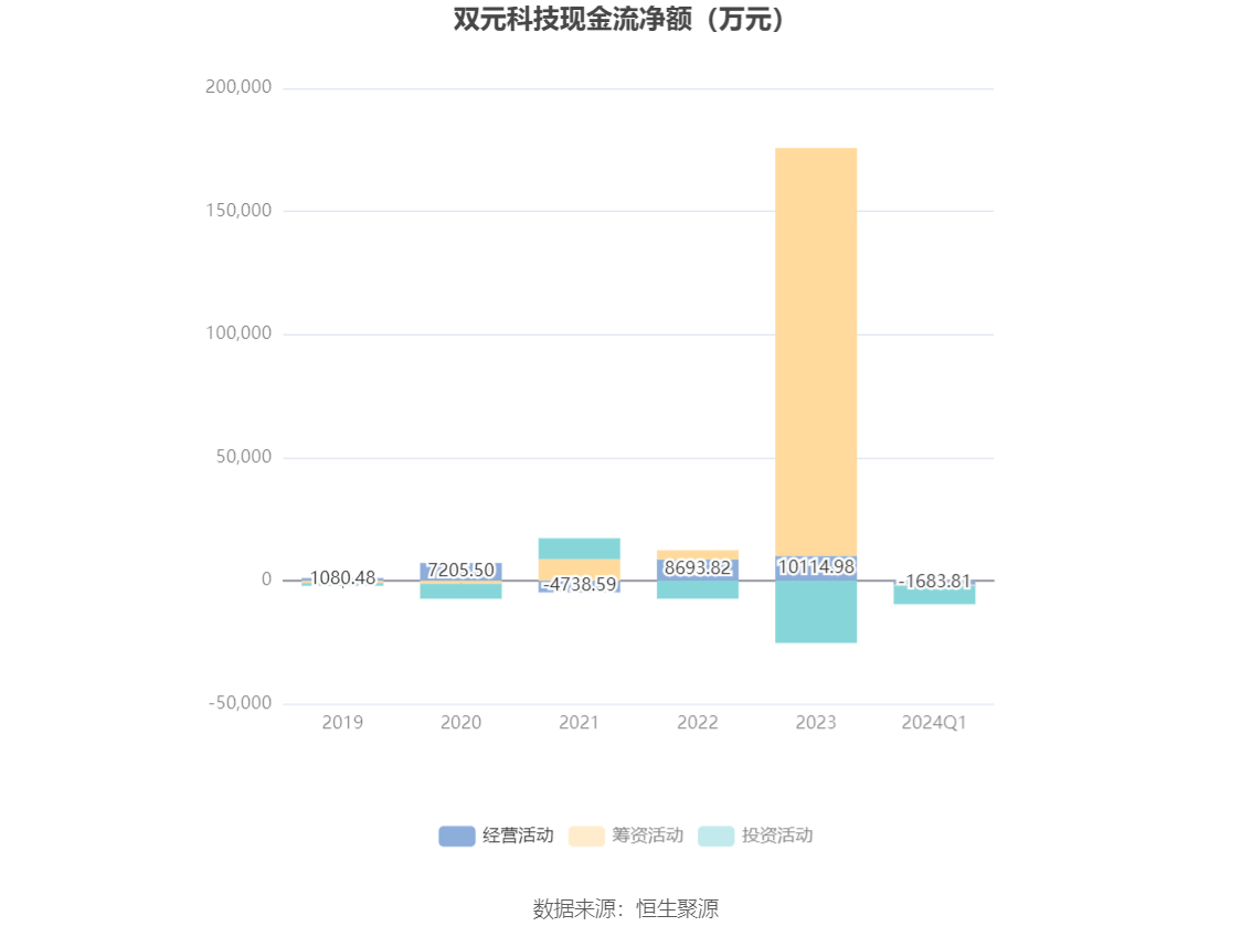 截至2024年一季度末,公司经营活动现金流净额为-1683.81万元,同比减少4835.31万元;筹资活动现金流净额-369.37万元,同比减少243.26万元;投资活动现金流净额-7491.83万元,上年同期为-1930.95万元。