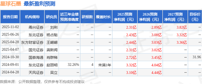 以下是详细的盈利预测信息:
