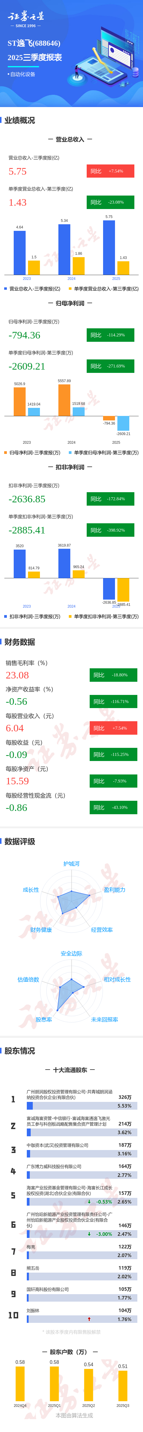 图解ST逸飞三季报:第三季度单季净利润同比下降271.69%