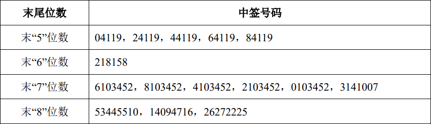 11月5日公告,科创板IPO网上中签号码共有24480个,每个中签号码只能认购500股中邮科技股票。