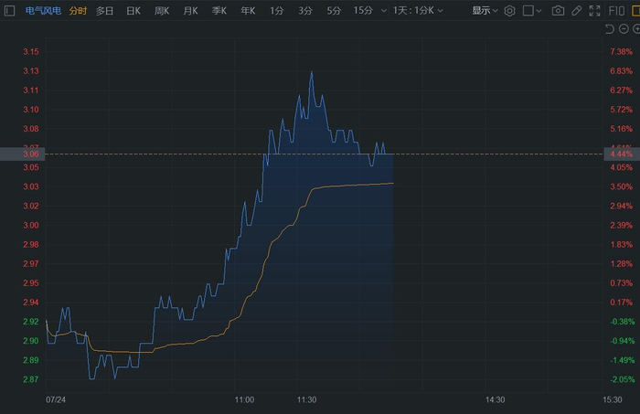 A股异动丨电气风电盘中涨7% 年初至今新增订单同比大幅提升