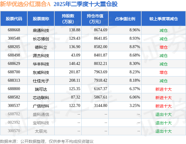 根据2025基金半年报公募基金重仓股数据,重仓该股的公募基金共29家,其中持有数量最多的公募基金为新华基金的新华优选分红混合A。新华优选分红混合A目前规模为9.68亿元,最新净值0.939(10月22日),较上一交易日下跌0.51%,近一年上涨74.6%。该公募基金现任基金经理为赵强。赵强在任的基金产品包括:新华策略精选股票A,管理时间为2017年5月17日至今,期间收益率为182.41%;新华安享多裕定开混合,管理时间为2022年10月25日至今,期间收益率为-15.22%;新华趋势领航混合,管理时间为2022年10月25日至今,期间收益率为7.0%。