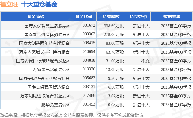 根据2025基金Q3季报公募基金重仓股数据,重仓该股的公募基金共10家,其中持有数量最多的公募基金为国寿安保基金的国寿安保智慧生活股票A。国寿安保智慧生活股票A目前规模为22.1亿元,最新净值1.917(10月29日),较上一交易日上涨1.05%,近一年上涨54.47%。该公募基金现任基金经理为张琦。张琦在任的基金产品包括:国寿安保目标策略混合发起A,管理时间为2017年10月24日至今,期间收益率为64.61%。