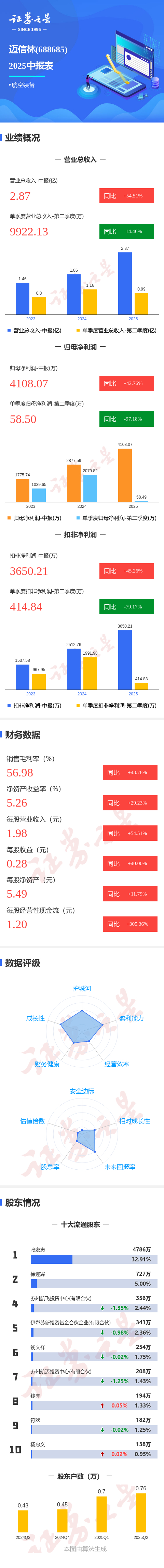 图解迈信林中报:第二季度单季净利润同比下降97.19%