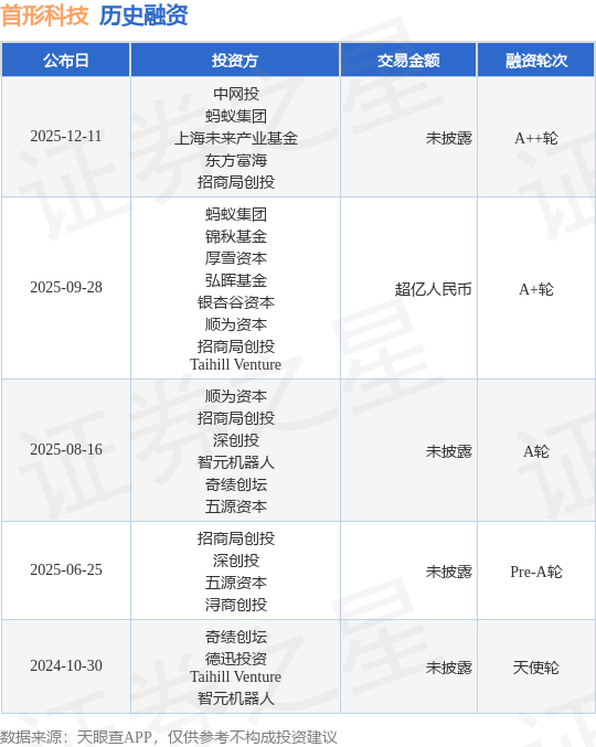 证券之星消息,根据天眼查APP于12月11日公布的信息整理,首形科技(上海)有限公司A++轮融资,融资额未披露,参与投资的机构包括中网投,蚂蚁集团,上海未来产业基金,东方富海,招商局创投。