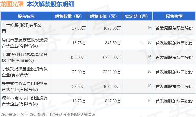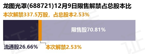 龙图光罩(688721)337.5万股限售股将于12月9日解禁,占总股本2.53%