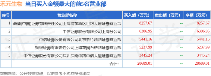 证券之星消息,沪深交易所2025年11月6日公布的交易公开信息显示,禾元生物(688765)因有价格涨跌幅限制的日换手率达到30%的前五只证券登上龙虎榜。此次是近5个交易日内第2次上榜。