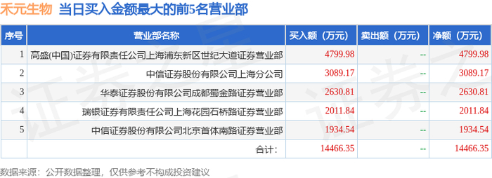 11月7日禾元生物(688765)龙虎榜数据:游资余哥上榜