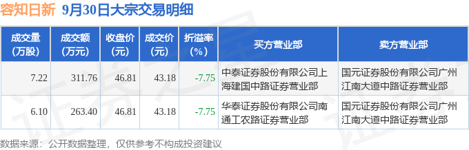 9月30日容知日新发生2笔大宗交易 成交金额575.16万元