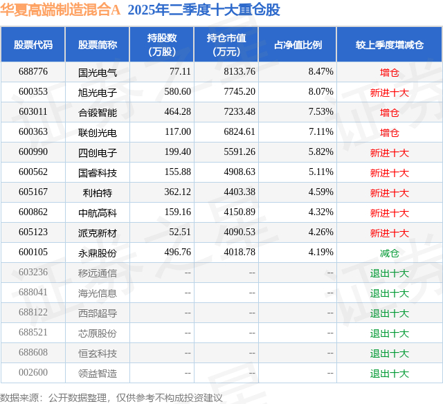 根据2025基金半年报公募基金重仓股数据,重仓该股的公募基金共28家,其中持有数量最多的公募基金为华夏基金的华夏高端制造混合A。华夏高端制造混合A目前规模为8.99亿元,最新净值1.547(9月25日),较上一交易日上涨0.26%,近一年上涨46.22%。该公募基金现任基金经理为吴昊。
