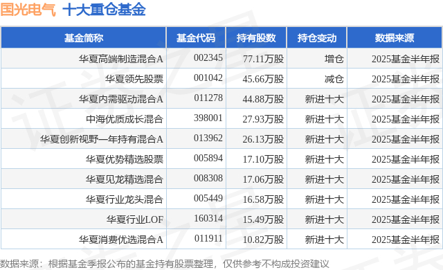 根据2025基金半年报公募基金重仓股数据,重仓该股的公募基金共28家,其中持有数量最多的公募基金为华夏基金的华夏高端制造混合A。华夏高端制造混合A目前规模为8.99亿元,最新净值1.417(10月15日),较上一交易日上涨2.53%,近一年上涨12.82%。该公募基金现任基金经理为吴昊。