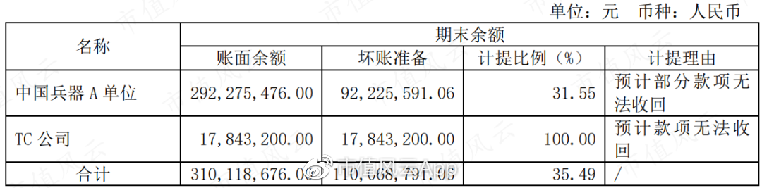 原本以为军工企业应收账款风险低,没想到公司最大的一笔单项计提就来自军工企业。这当中究竟发生了什么,也是一笔糊涂账。