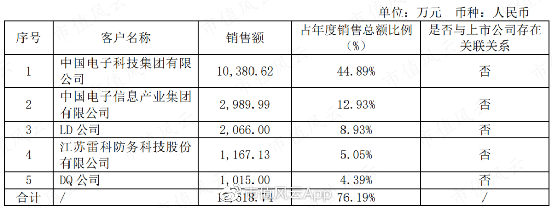 但是,科思科技却高度依赖军品业务,客户集中度也非常高,2021年前五名客户贡献了90%的收入。