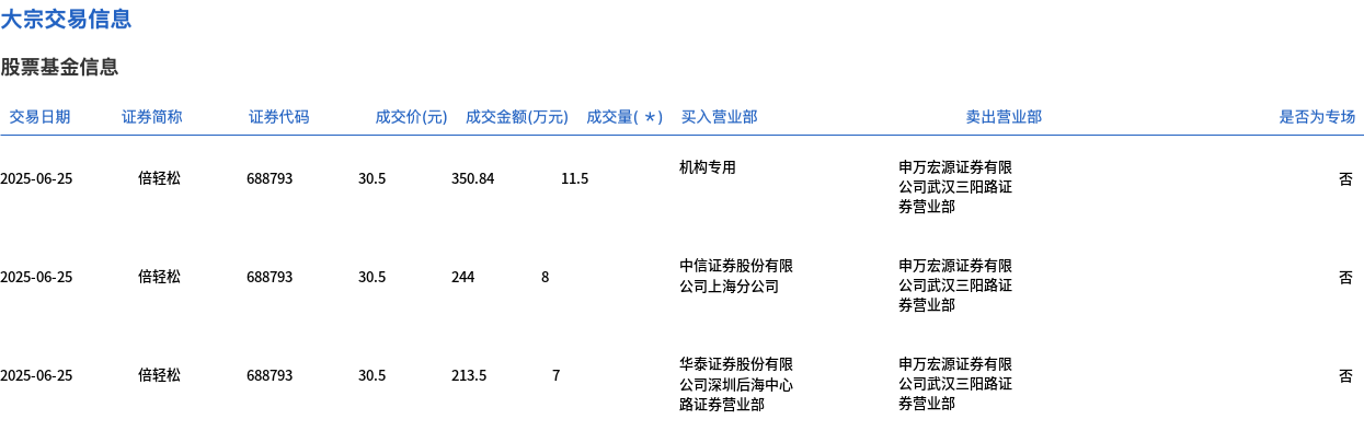 倍轻松今日大宗交易折价成交33.1万股,成交额1009.64万元